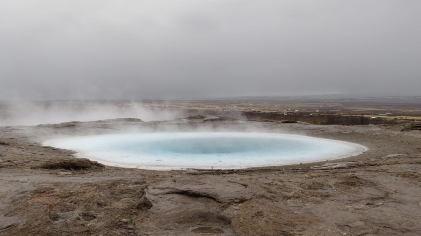 Vanuit Reykjavik trokken we de natuur in, richting de Geysir in de Haukadalur-vallei. Hier spuit de Strokkur-geiser elke paar minuten metershoog de lucht in – een indrukwekkend schouwspel dat je minstens één keer in je leven moet hebben gezien. En je voelt overal dat de aarde hier leeft.