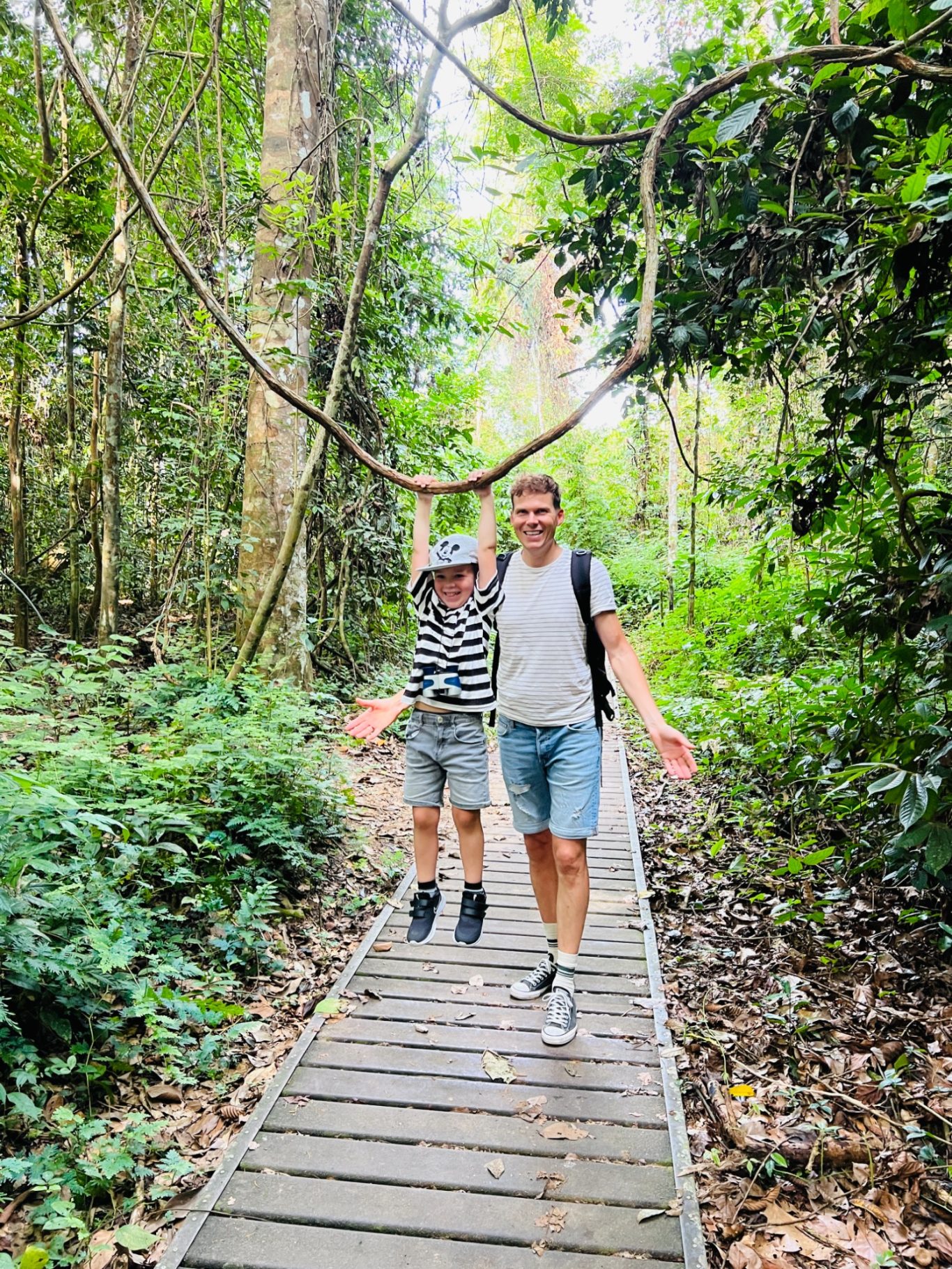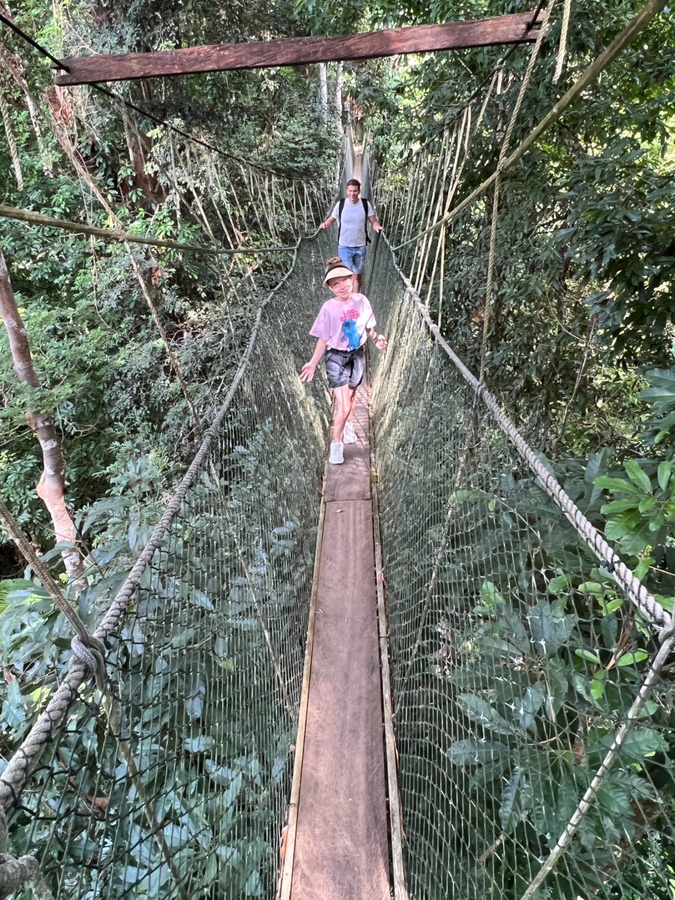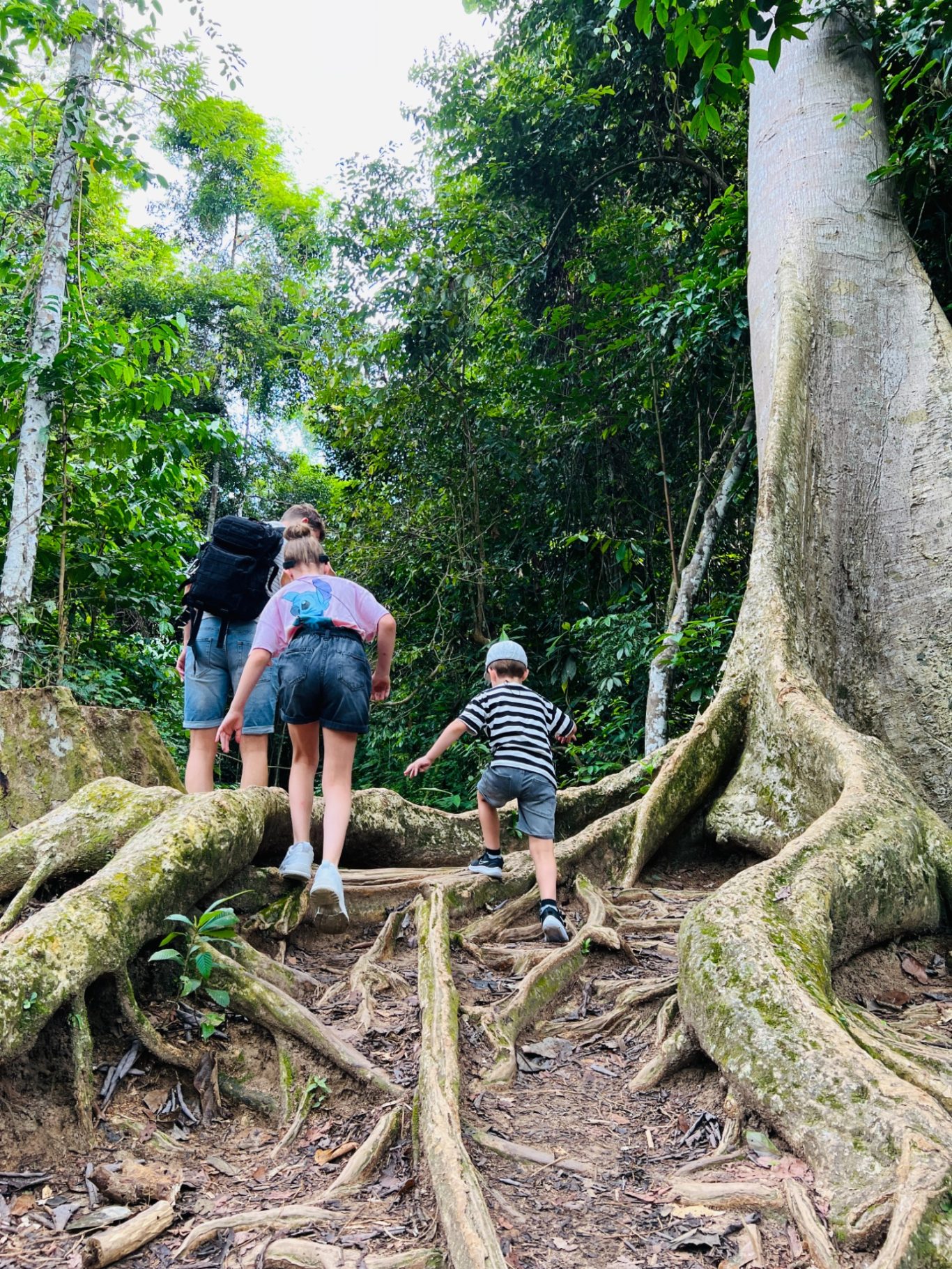 Het is inmiddels alweer dag 6, we vertrekken naar Taman Negera: oftewel de jungle! Onderweg stoppen we bij een olifanten sanctuary waar we gaan helpen bij de verzorging van de olifanten. Voor de kinderen een prachtige ervaring. Na de tussenstop bij de olifanten komen we na een aantal uur aan bij Taman Negera waar we de auto parkeren en met een klein bootje de rivier over gaan. Ons huisje ligt midden in de jungle, super toffe ervaring. Na een goede nachtrust in de jungle maken we ons gereed voor de canopy walk, een toffe tocht over touwbruggen. Een hele leuke tour door de jungle en goed te doen voor onze kinderen. Wel af en toe een beetje opletten, maar ze hebben volop genoten! In de middag hebben we een boottocht naar een waterval gepland staan. Deze longtailbootjes vliegen over het water. Wat een fantastische tocht! De klim naar de waterval is een pittige klim voor de kinderen, maar ze vinden het geweldig! Lekker klimmen en klauteren en aan het einde heerlijk afkoelen bij de waterval.