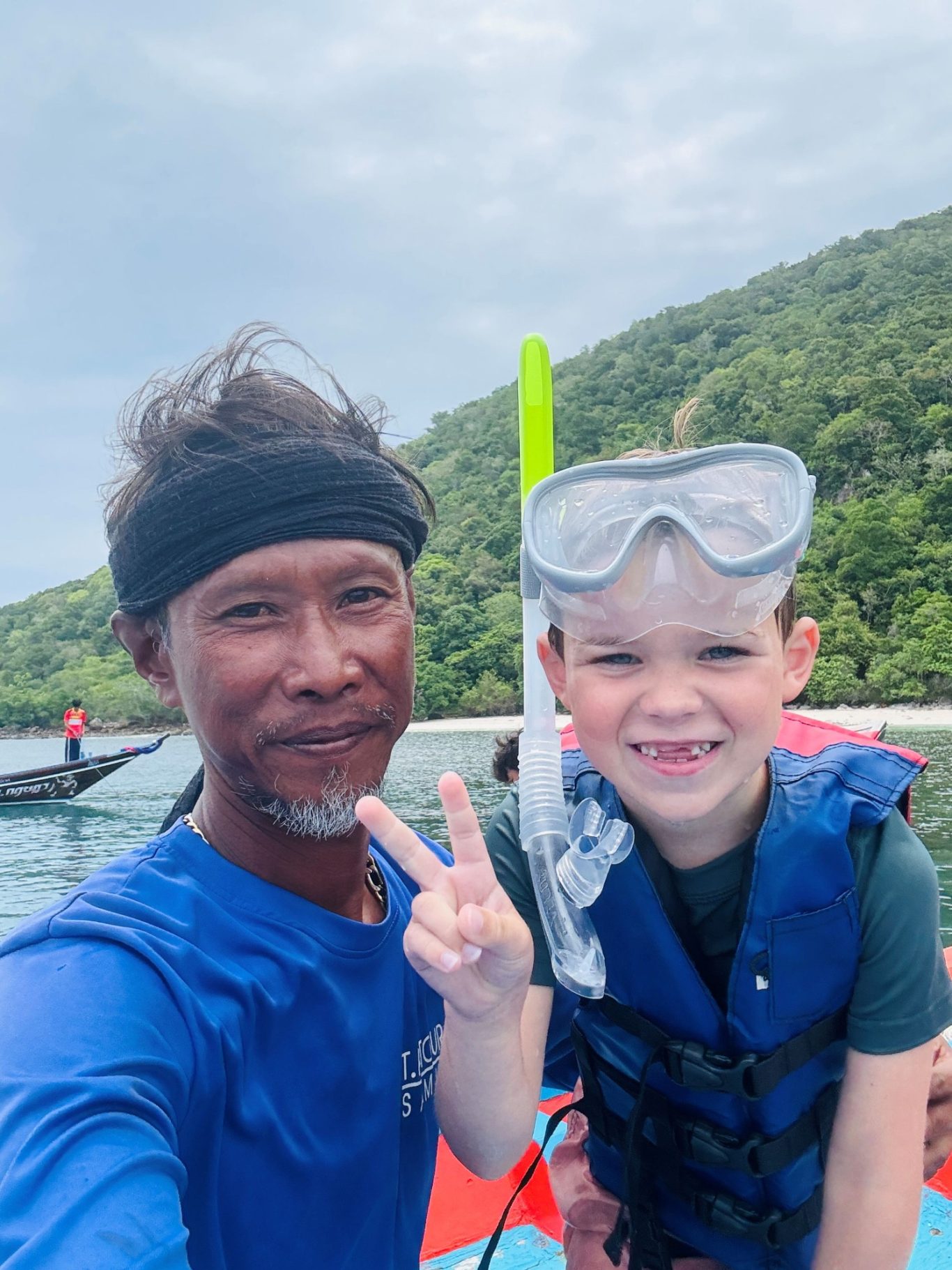Op het eiland Koh Tao was het tijd om even te relaxen. We genoten van de zon, het zand en de zee. De kinderen vonden het heerlijk om met een kano te dobberen op het water, en snorkelen boven de kleurrijke visjes was ook een hit.